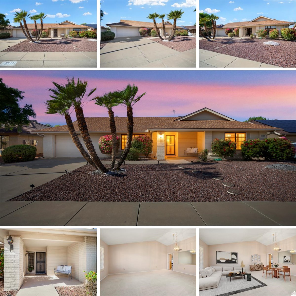 Inviting and popular Capistrano Model in the 2nd series of homes of Del Webb. Located in the heart of 55+ Sun City West, this enjoyable Active Adult Community is close to shopping and medical facilities. Recent updates include fresh Sherwin Williams Interior paint, Interior shutters that add a finishing touch throughout, NEW Primary shower & NEW HVAC system. Newly installed plank tile flooring in entry, family room, kitchen, hallway, laundry, Primary bedroom and bathrooms. Living, Dining and Family Rooms have high 12+ vaulted ceilings that can reimagined into 2 flex living spaces for living your way...hobbies, quilting & crafts. 2 bedrooms & 2 bathrooms w/ Primary bedroom includes a newly updated walk-in shower, walk-in closet and dual sinks. Large open kitchen w/ breakfast nook & breakfast bar, multiple cabinets & counters for the entertaining & cooking lifestyle. Updated innovative accordion panels for slider door to back patio. Backyard is a very open and oversized entertaining area w/covered patio, gated patio pony wall, privacy walls and cool decking. The spacious indoor laundry room, located off the kitchen, has access into garage. This laundry room has oversized and imagines potential for storage or a hobby area. Long driveway & the two-car garage provides direct access to the home and includes custom cabinetry on both sides. Oversized backyard approx. 9,700+ sq.ft. complete with a covered patio, gated pony wall, privacy walls, and cool decking.
